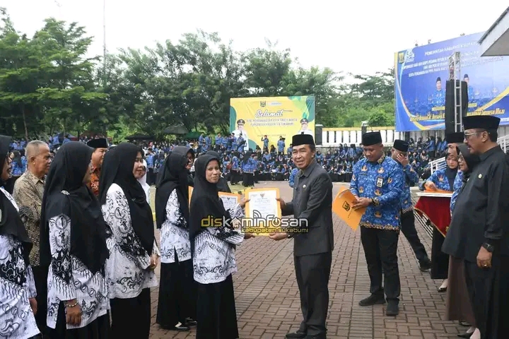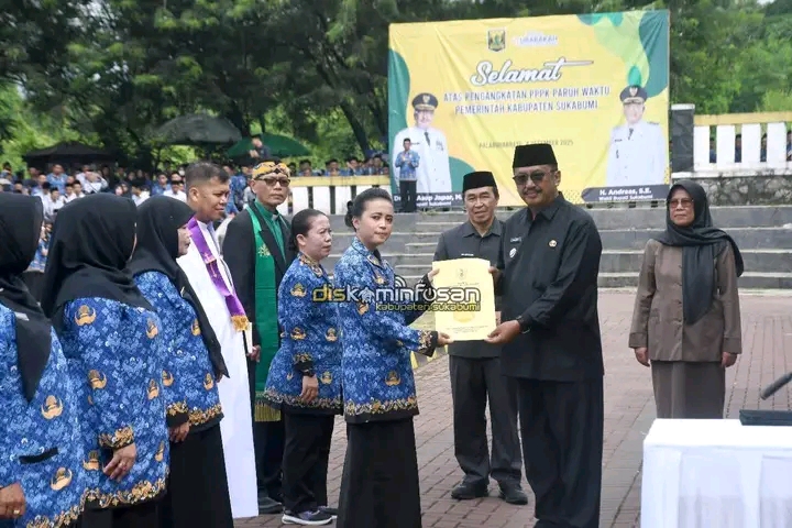 Sebanyak 8.164 tenaga honorer di Kabupaten Sukabumi resmi menyandang status Pegawai Pemerintah dengan Perjanjian Kerja (PPPK) Paruh Waktu. Hal itu pasca dilantiknya mereka secara langsung oleh Bupati Sukabumi H. Asep Japar di Lapang Cangehgar, Palabuhanratu, Kamis, 4 Desember 2025.