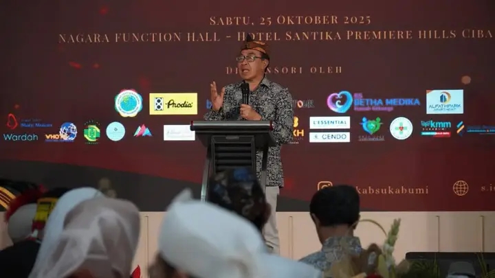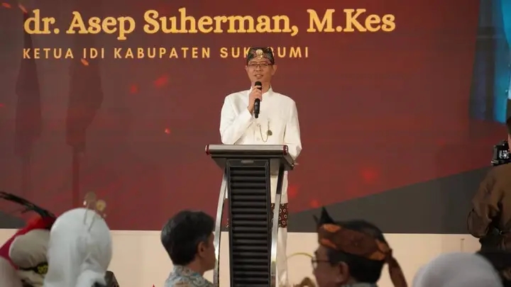 Sekda Kabupaten Sukabumi H. Ade Suryaman menghadiri Hari Ulang Tahun Ikatan Dokter Indonesia (IDI) Kabupaten Sukabumi ke-75 di Hotel Santika Premiere Resort, Cibadak, Sabtu malam 25 Oktober 2025.