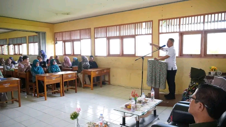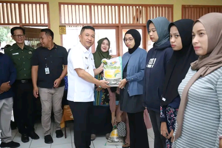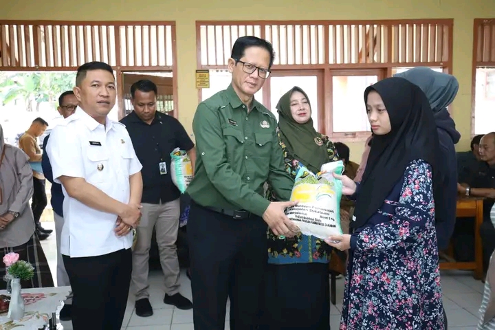 Wakil Bupati Sukabumi H.Andreas menyalurkan Beras Nutrizinc di SMPN 1 Kadudampit. Kegiatan itu sebagai ikhtiar penurunan stunting di Kabupaten Sukabumi, selasa, (30/12/25)