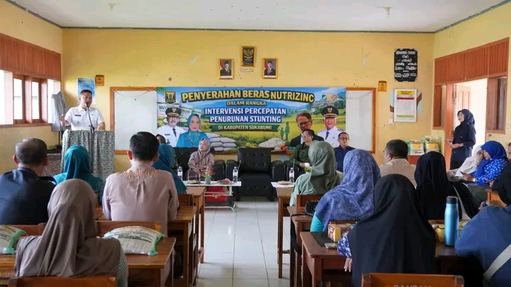 ” Pembagian beras Nutrizinc ini mudah mudahan bisa berkontribusi terhadap upaya penurunan stunting, saya sampaikan terima kasih kepada tenaga medis dan kader Posyandu yang terdepan mendampingi ibu hamil serta terus bahu membahu umenurunkan angka Stunting di Kabupaten Sukabumi” ungkapnya