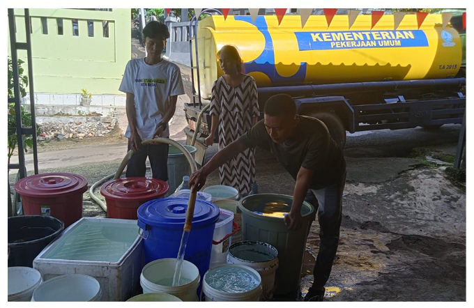 Pendistribusian air bersih menggunakan truk tangki dilakukan sebagai solusi sementara agar kebutuhan dasar warga tetap terpenuhi. Setiap rit pengiriman melibatkan petugas lapangan yang memastikan distribusi berjalan tertib dan tepat sasaran.